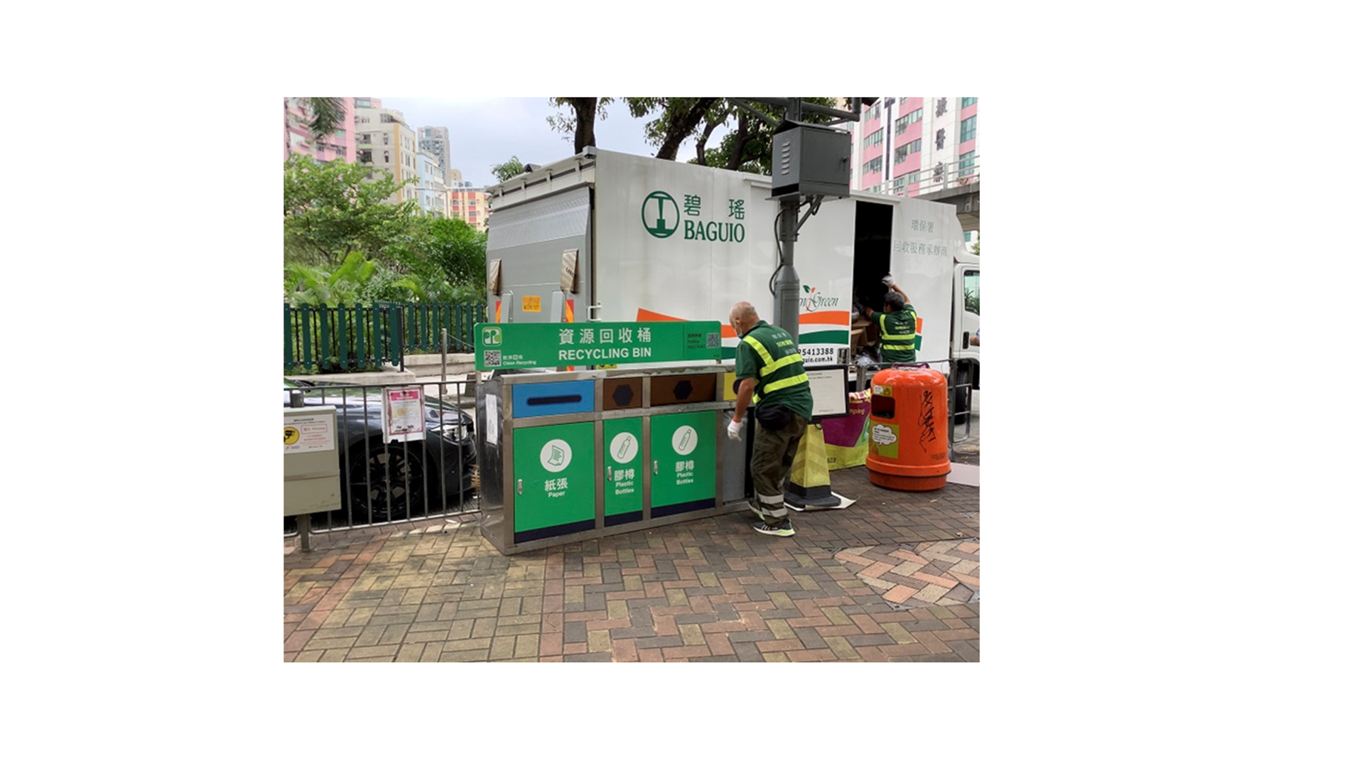 With the continuous enhancement of GREEN@COMMUNITY network and services, as well as the commencement of various waste reduction and recycling schemes spearheaded by the EPD, the role of kerbside recycling bins in urban areas in community recycling support has been diminishing. To improve the overall recycling efficiency and recyclables quality, the EPD has decided to progressively remove the kerbside recycling bins in urban areas including Southern District since June 2022. On-the-spot publicity activities and posting of signage/notices have been carried out to notify the public about the removal of the recycling bins, and to encourage them to make good use of the upgraded facilities in housing estates/residential buildings and GREEN@COMMUNITY for recycling. The removal of about 800 sets of kerbside recycling bins in urban areas was basically completed by the end of 2022.