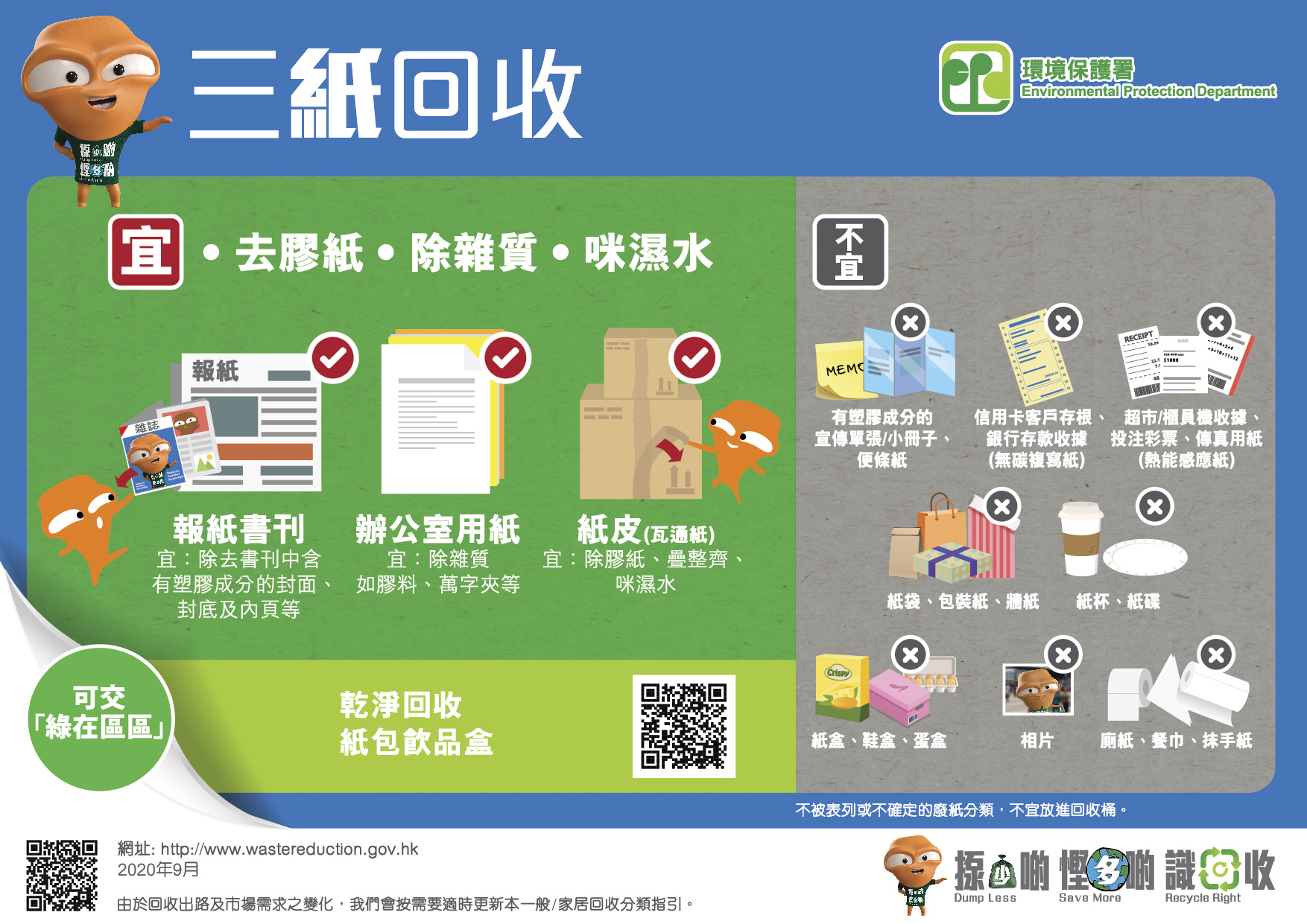 If any Paper Recyclable Materials Producer (e.g. residential organizations, institutions, companies, property management companies), street corner recycling shops, or mobile recyclers are interested in participating or knowing more about the waste paper collection and recycling services, please contact our contractors for enquiries.