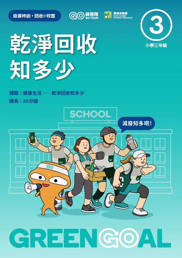 减废回收教材套 Table of content Body 此教材套提供不同的课堂教案、工作纸、教学活动及延伸活动,支援教师在校内推广减废回收概念及推广「绿在区区」回收设施,并鼓励学生邀请家人于生活中积极实践分类回收。内容包括:小学:提供课堂教案、工作纸和延伸活动中学:提供STEAM学习活动资源套(包括课堂教案和工作纸、实验测试指南、延伸活动),以活动形式教授环保知识小学教材套:教学简报教材套:教学简报教材套:小一小二小三教材套:教材套:教学简报教材套:小四小五小六 中学STEAM学习活动资源套:教学简报中一至中三
