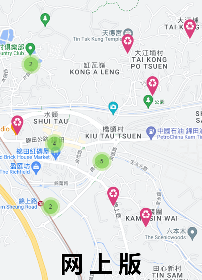 环保署现时在乡郊地区的公众地方设置约850个路边回收桶,以方便市民回收最常见的回收物(例如纸张、塑胶及金属)。随着公众对干净回收意识的增强,从路边回收桶中收集的回收物会被转化成可再生资源。