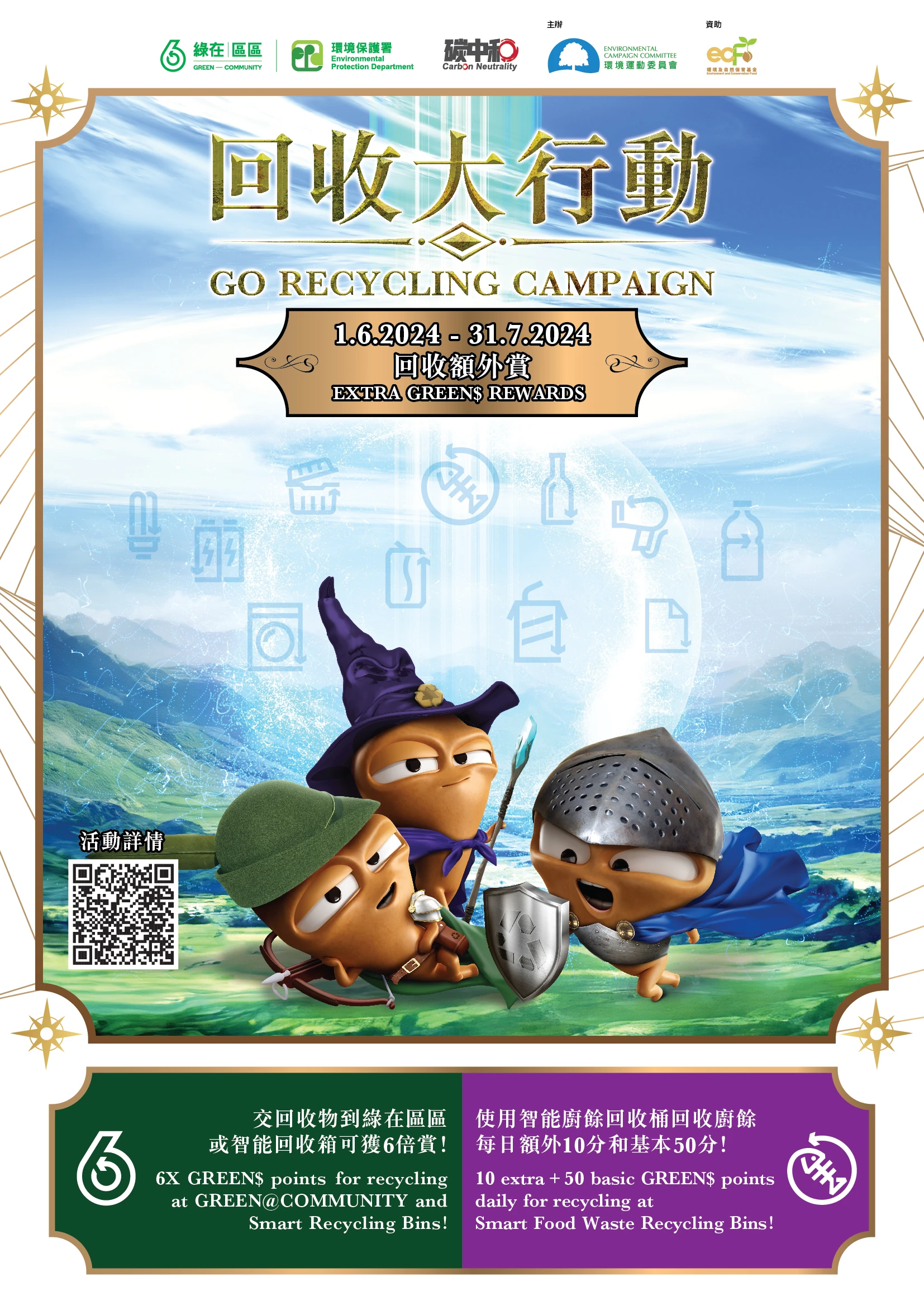 環境保護署(環保署)於2024年6月1日啟動「回收大行動」,透過新一輪宣傳推廣活動,以及給予額外「綠綠賞」積分,鼓勵市民培養分類回收習慣並融入日常生活中。「回收大行動」亦為慶祝香港特別行政區(香港特區)成立二十七周年慶祝活動之一。